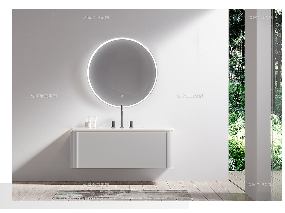 纯白色的浴室柜,以极简的笔触,营造独特的高级质感,平面的设计,仿佛置身大自然,让人放松心旷神怡